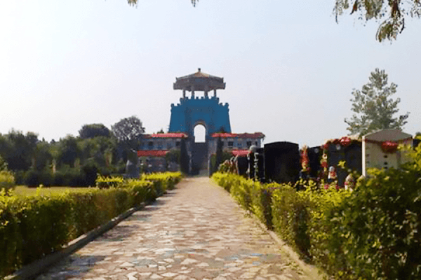 万福金像陵园北临运河,南临金水河,西临龙池沟,墓区由牌坊、龙头门、莲花潭、祭坛、阴阳池及盘龙园、卧虎园、乾坤园、极乐园等十几个墓区组成,造型别致,各有风采。